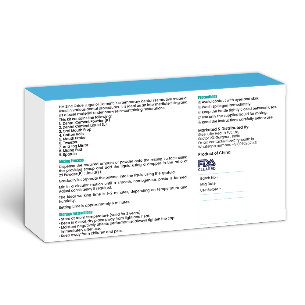 So when you look for a temporary dental restoration, you have everything you need in HM Zinc Oxide Eugenol Dental Care kit.