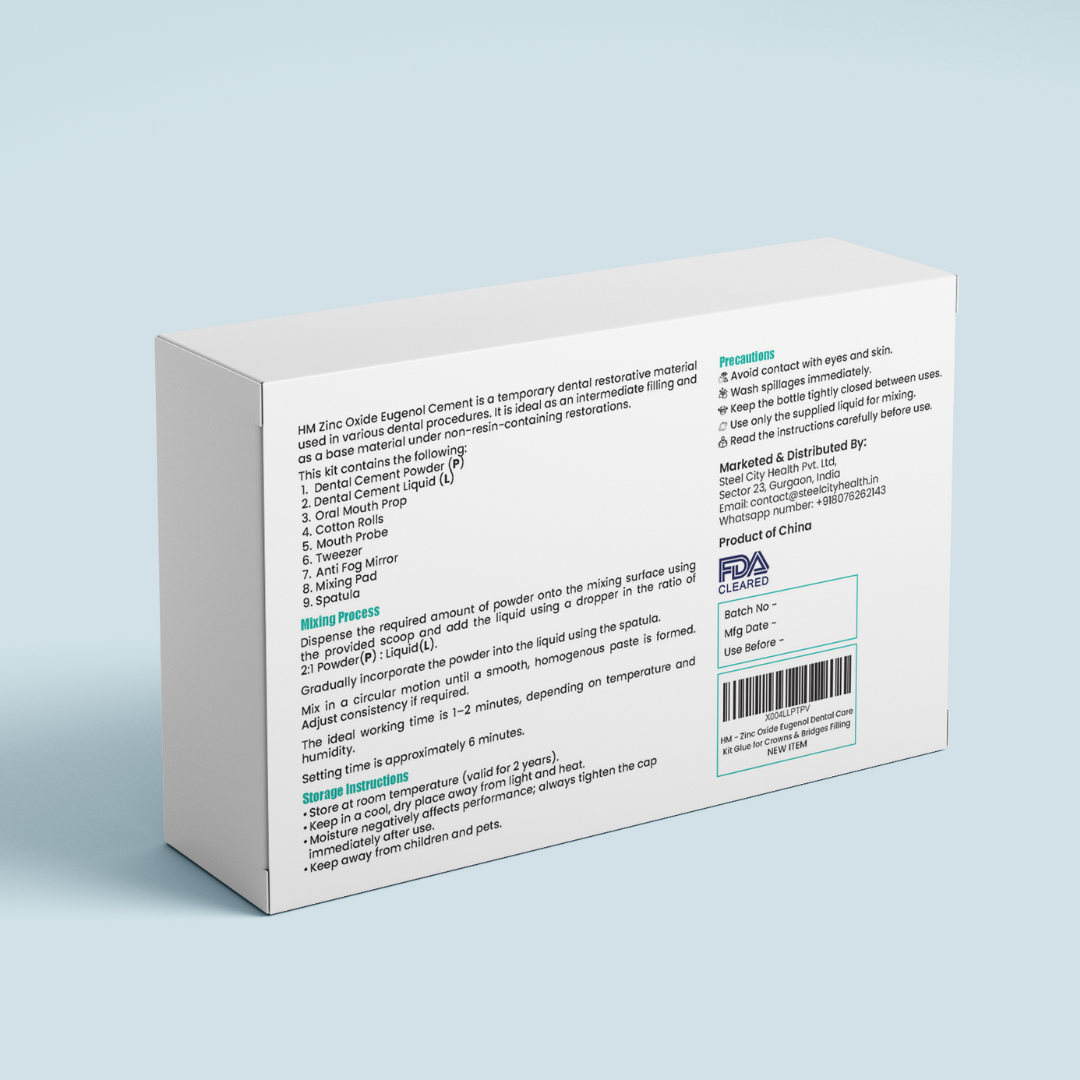 So when you look for a temporary dental restoration, you have everything you need in HM Zinc Oxide Eugenol Dental Care kit.