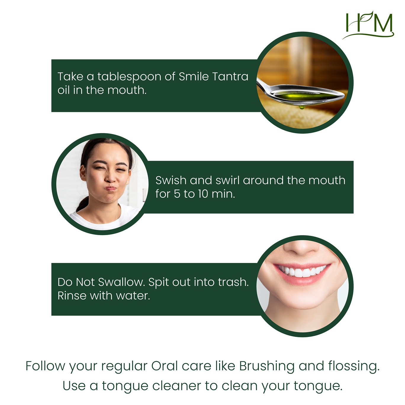 • Organic and Edible: Crafted with organic, food-grade ingredients, our Smile Tantra Oil Pulling ensures a safe and pure swishing experience. Every use provides the nourishment your oral health deserves.